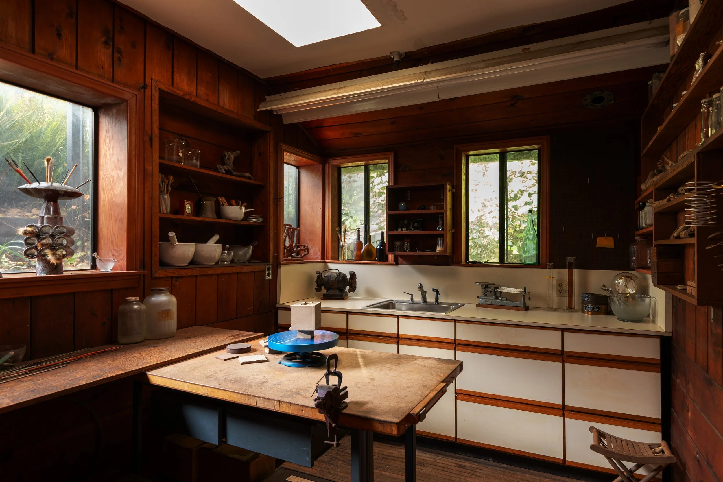 In sun-filled rooms overlooking treetops and quiet canyons, Gertrud threw delicate ceramic forms on the wheel they brought from Austria, Otto developed groundbreaking glazes, and together they hosted intimate chamber-music evenings and gathered a circle of artists, musicians, and thinkers. The environment — serene, natural, and removed from the pace of the city — became essential to their practice: controlled light for viewing work, space for kilns and experimentation, and a domestic life seamlessly interwoven with creation.